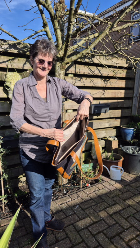 - Hengsels ca.70 cm (gemeten vanaf de bovenkant tas, naar schouder en terug naar de tas)