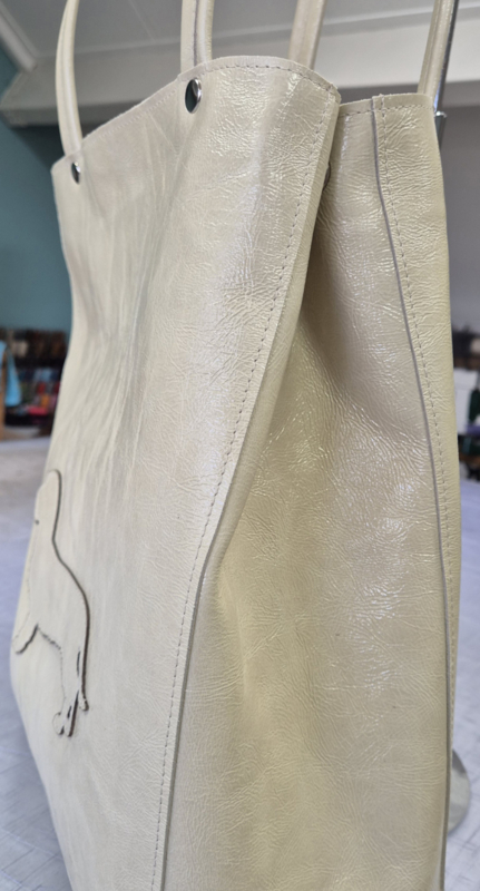 Shopper gemaakt van creme kleur glossy kreukleer